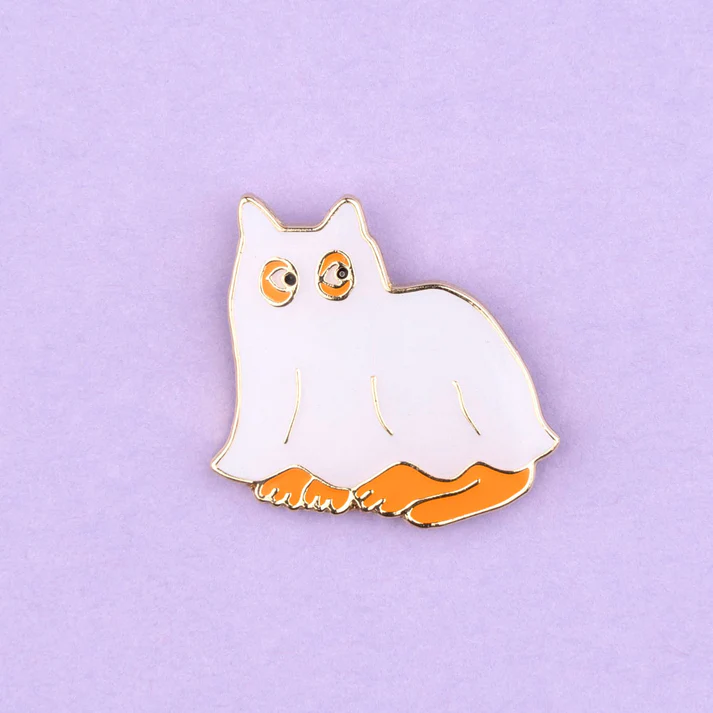 Un bien mignon petit pin’s en forme de chat dans son plus beau déguisement de fantôme. Le détail qui tue : son drap blanc qui devient phosphorescent dans la nuit. Un accessoire hyper original qui fera des jaloux pour Halloween.